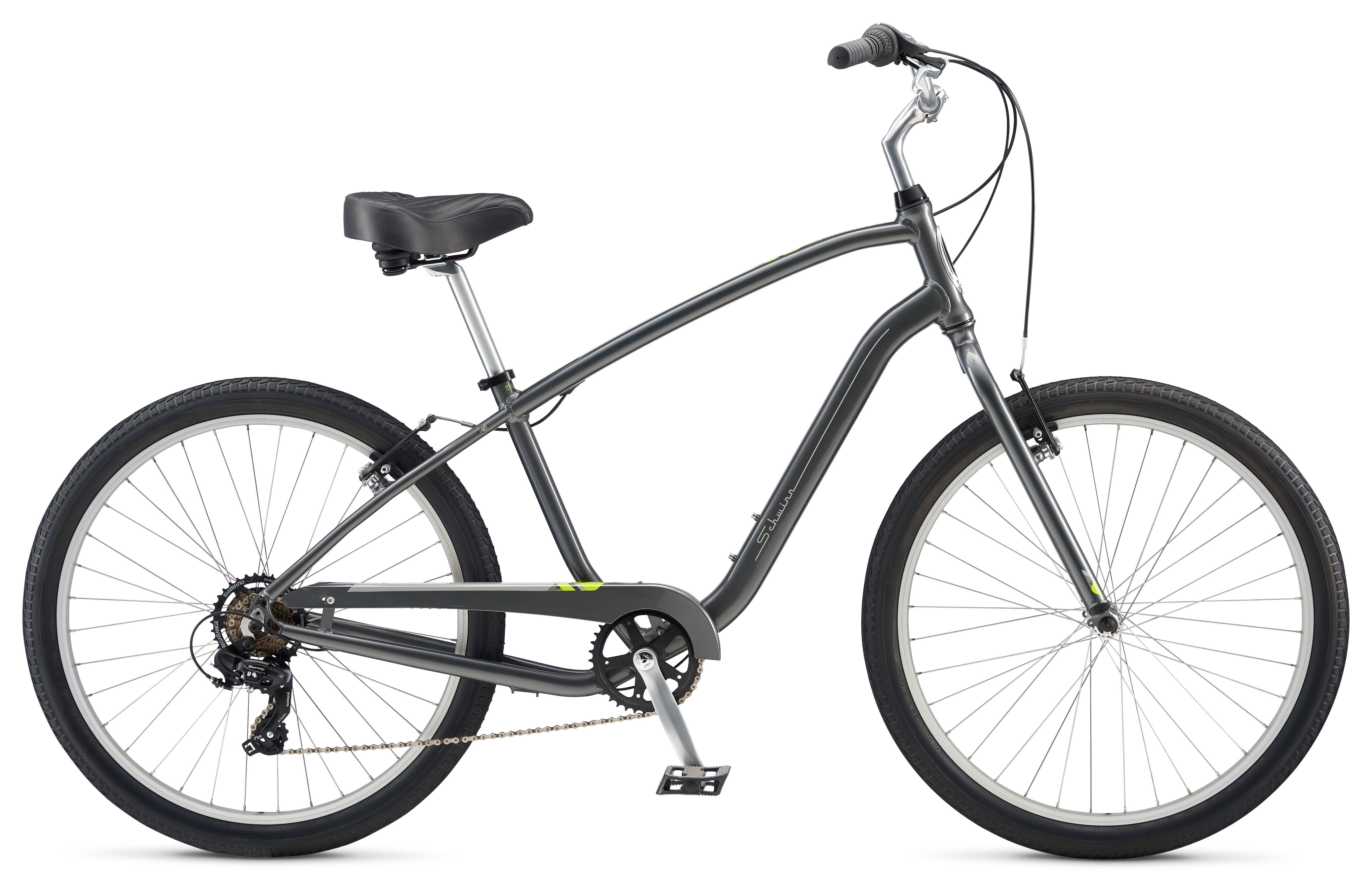 Бренд SCHWINN Модель Streamliner 2 Год 2017 Материал рамы Алюминий (Alloy) Рама/описание Schwinn Relaxed Position Geometry alloy Тип вилки Жесткая (композит) Ход вилки, мм нет Блокировка амортизатора Нет Вилка/регулировки Жесткая Schwinn Диаметр колес 26" Обода Alex DC-26 двойные Резина Schwinn classic 26x2.125 / Schwinn classic 26x2.125 Тормоза Ободные (V-brake) Тормоз Ободной / Ободной Тормозные ручки Tektro alloy Уровень оборудования Любительский Шифтеры Shimano Revoshift twist shifter SL-RS45 Переключатель задний Shimano Tourney Кассета Shimano 14-34t, 7-скоростная Цепь KMC Z51 Каретка Cartridge Шатуны Schwinn alloy 38t Количество скоростей 7 Руль Schwinn path steel, 25.4mm Вынос Schwinn quill, 25.4mm Седло Selle Royal comfort elastomer Подседельный штырь Alloy 27.2 x 350 Педали Schwinn comfort plastic with reflector Втулка передняя Alloy QR Пол/возраст Мужской Вес 14.96 кг Втулка задняя Alloy QR -